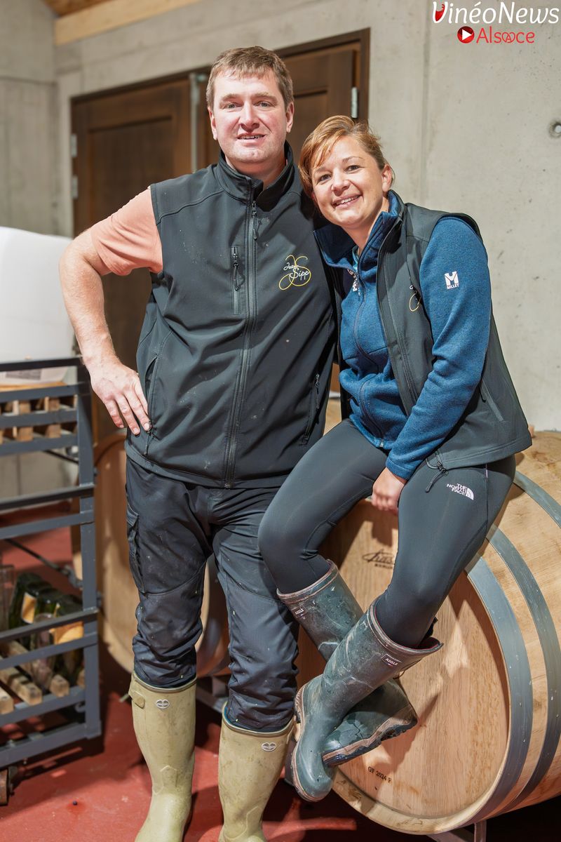Aujourd’hui, Céline et Jean-Guillaume Sipp incarnent la nouvelle génération à la tête du domaine. Jean-Guillaume représente la cinquième génération, héritier d’un savoir-faire transmis depuis près d’un siècle. Céline, elle, a rejoint l’aventure plus récemment, animée par une passion qui s’est imposée naturellement. Ensemble, ils exploitent 27 hectares de vignes, principalement autour de Ribeauvillé, mais aussi des parcelles dans l’Altenberg de Bergheim et 2 hectares de Pinot Noir à Rodern.